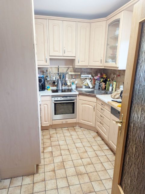 Die Küche ist mit Einbauschränken und Elektrogeräten ausgestattet. Hier lassen sich köstliche Mahlzeiten zaubern, die man anschließend auf der sonnigen Terrasse genießen kann. Der Garten bietet viel Raum für individuelle Gestaltungsmöglichkeiten und lädt zum Entspannen und Verweilen ein.