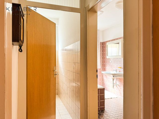 Sie betreten das Haus in einer ruhigen Seitenstrasse, über ein großzügiges Treppenhaus. Die Wohnung befindet sich im 1. Stock rechts. Über den großen Flur mit einem schönen Einbauschrank gelangen Sie auf der rechten Seite in die Küche, eine einfach Einbauküche ist vorhanden. Über die Küche gelangen Sie in das Esszimmer. Danach gelangen Sie in das Große Wohnzimmer ca. 36 m² momentan gibt es keine Trennwand von Esszimmer und Wohnzimmer.
