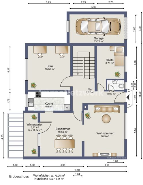 •Wintergarten (50?%): 5,97?m²