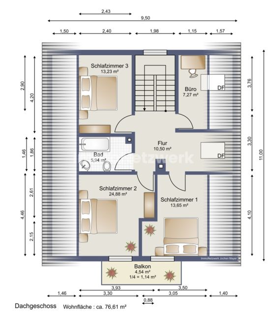 Wohnfläche im DG: 76,61?m²