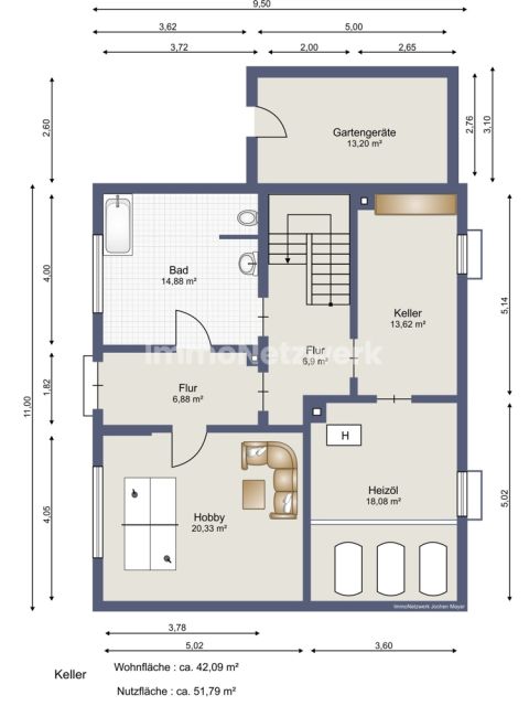 Kellergeschoss (anrechenbare Wohnfläche):